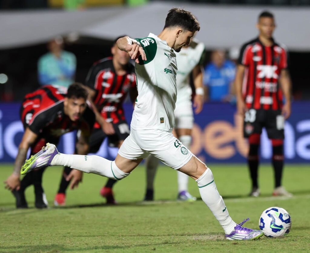 As mudanças seguiram com a entrada de Ramón Sosa, que já chegou participando da jogada que colocou os ventos a favor do Palmeiras no Barradão. Aos 22′, após tabela com Vitor Roque, o camisa 19 foi derrubado na área. A penalidade foi marcada e Piquerez cobrou, marcando o primeiro do Verdão. A estrela de Sosa brilhou mais uma vez quando, aos 40′, o atacante alçou a bola na área e Flaco López marcou de cabeça.
