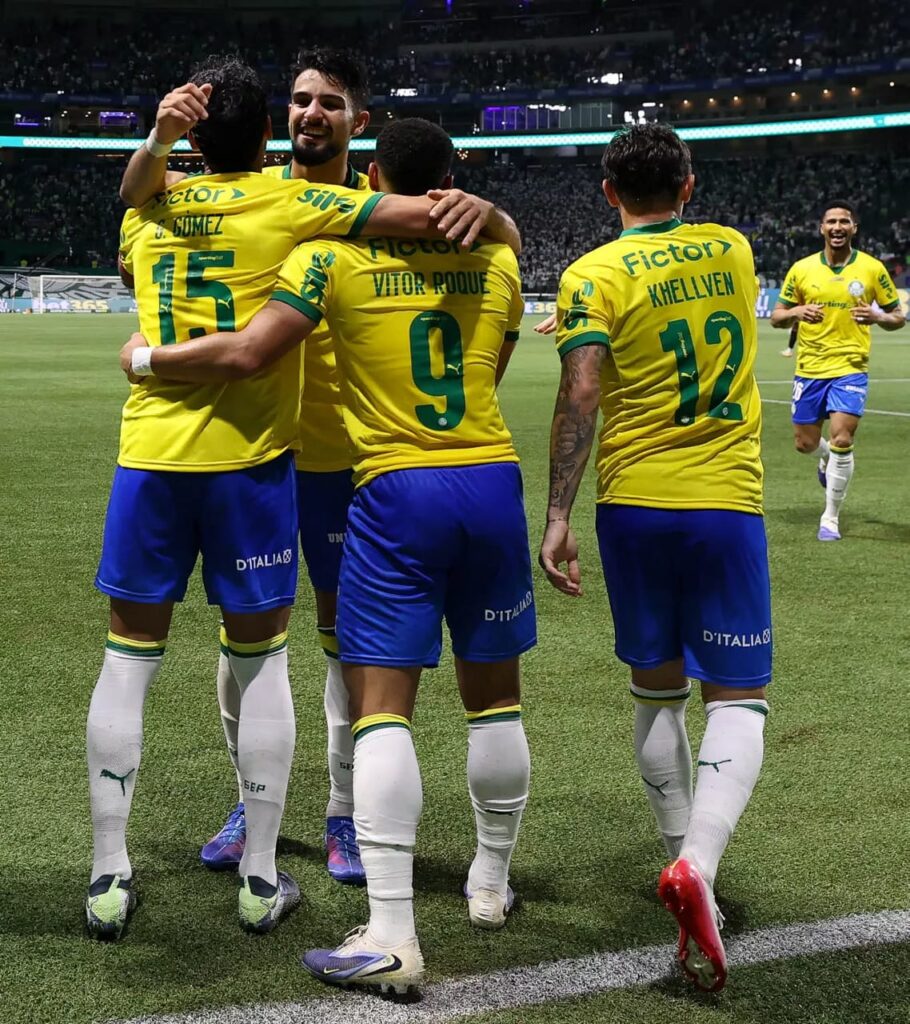 A dupla de ataque foi protagonista em dois dos três gols da partida. Aos 14 minutos da primeira etapa, Vitor Roque serviu Flaco López que abriu o placar com um lindo chute dentro da área. O Palmeiras seguiu pressionando até os 45+acréscimos, mas nada mudou.