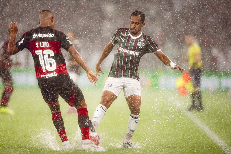 Com a bola rolando novamente, o clássico passou a ser disputado em condições longe do ideal. O Flamengo teve dificuldades na circulação, errou mais do que costuma e viu o Fluminense se sentir mais confortável no caos. Ainda assim, o Rubro-Negro teve chances claras na primeira etapa. A melhor delas com Samuel Lino, que recebeu livre dentro da pequena área após cobrança de escanteio, mas não conseguiu finalizar como o lance pedia. Antes disso, um gol de Carrascal chegou a levantar a torcida, mas foi corretamente anulado por impedimento.
