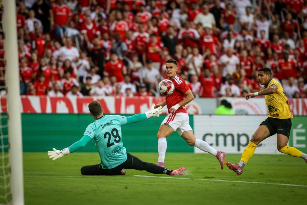 O time manteve amplitude, abriu o campo, fez o Ypiranga correr atrás da própria sombra e trabalhou a bola sem aquela pressa ansiosa de quem já está ganhando. Alan Patrick flutuava onde queria, arrastando marcação e clareando o corredor interno; quando o adversário subia um passo, o Inter atacava às costas. Quando recuava, girava a bola até encontrar o momento certo. As entradas de Vitinho e Alerrandro não foram apenas “oxigênio”: foram leitura de jogo. Um para atacar profundidade, outro para agredir a última linha. Não foi espetáculo aleatório — foi controle. E controle, convenhamos, é coisa de time que sabe exatamente o tamanho que tem.
