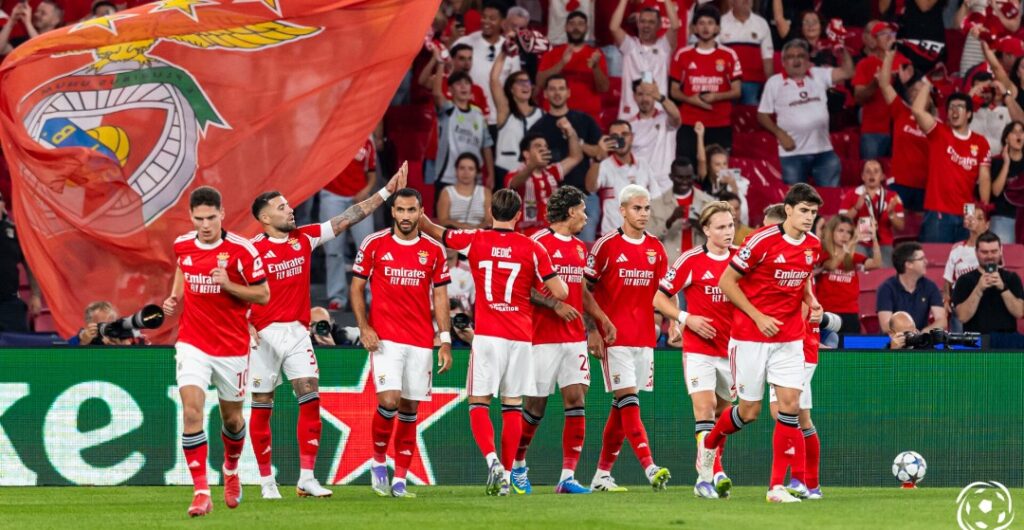 A escalação que começou o jogo foi: Trubin; Barrenechea; Pavlidis; Dédic; Richard Ríos; Schjelderup; Prestianni; Dahl; Rafa Silva; Otamendi e Tomás Araújo.